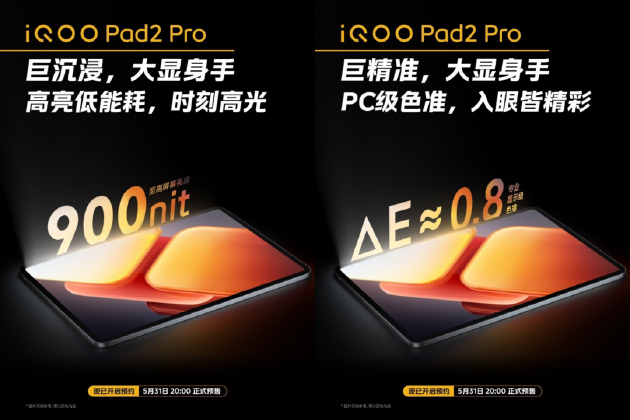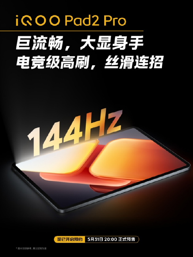 2024年5月31日, PC级性能巨幕平板iQOO Pad2系列,iQOO Pad2 Pro和iQOO Pad2两款新品正式开启预售。此系列凭借顶级性能、高清巨屏,持久续航,轻松驾驭各大热门游戏,打造行业电竞新纪元,并成为首款KPL推荐平板,可以最大限度满足电竞用户的需求。
