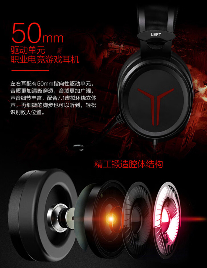 联想拯救者 Star Y360 风暴灰头戴式游戏耳机上市:50mm 单元、USB 声卡,89 元
