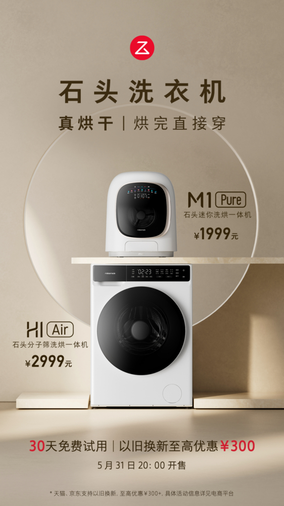 5月31日尾款开售 石头洗烘一体机H1 Air和M1 Pure羊毛不薅更待何时?
