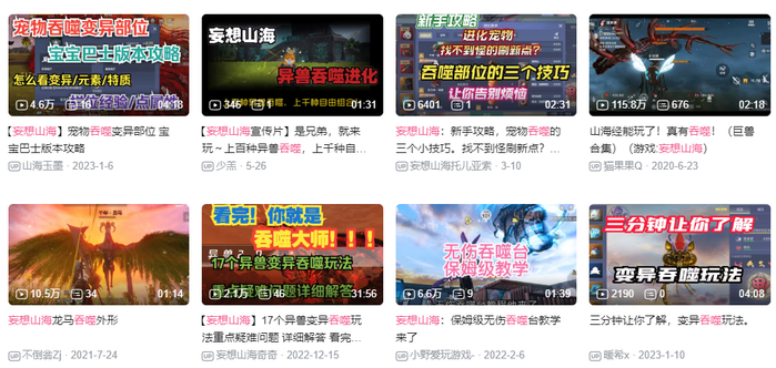 结果这个功能上线后,玩家完全不在乎美术的美丑,反而非常喜欢这种拼接带来的创造感。搜索“妄想山海”和“吞噬”,这个玩法系统也依然是玩家社区最感兴趣的话题之一。