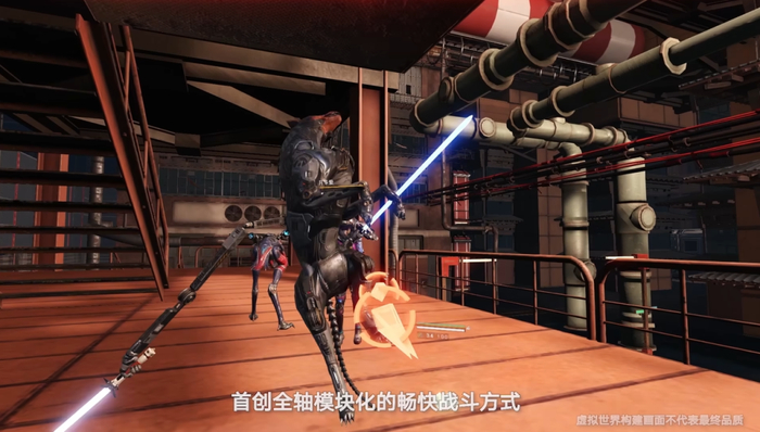 三分钟的PV,展示了一段穿越数个场景的太空探索之旅,随处可见星舰、机甲和形态各异的赛博义体,玩家甚至能操控着机械犬拿着光剑作战。