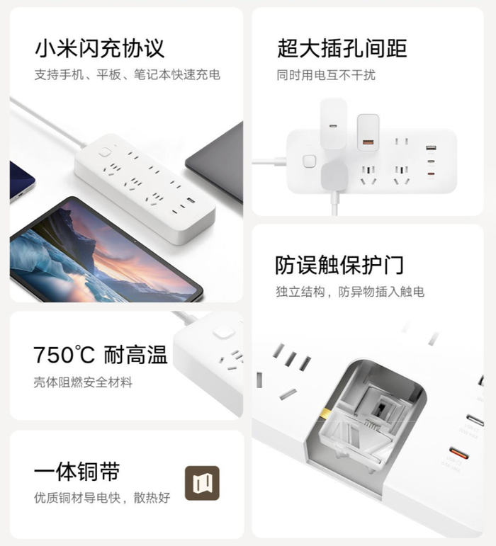 小米 67W 快充插线板京东开售:6 位电源插孔 + 2C + 1A,售 99 元