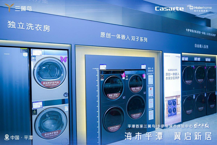 在店内一圈下来,不像是单纯的逛家电家居店,更像是在参加一场美好生活展览,因为海尔智家全产业、全主力品牌、全生态产品无处不在,位置恰到好处的洗衣房,柜电完美融