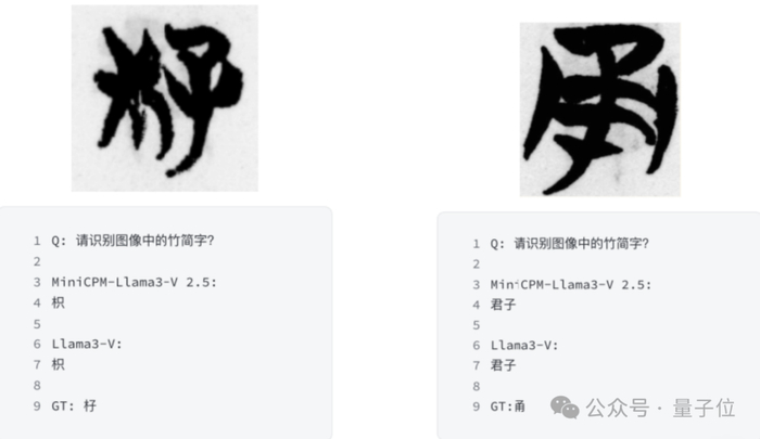 MiniCPM-Llama3-V 2.5 特有的功能之一是识别清华简,这是一种非常罕见、于战国时期写在竹子上的中国古代文字。