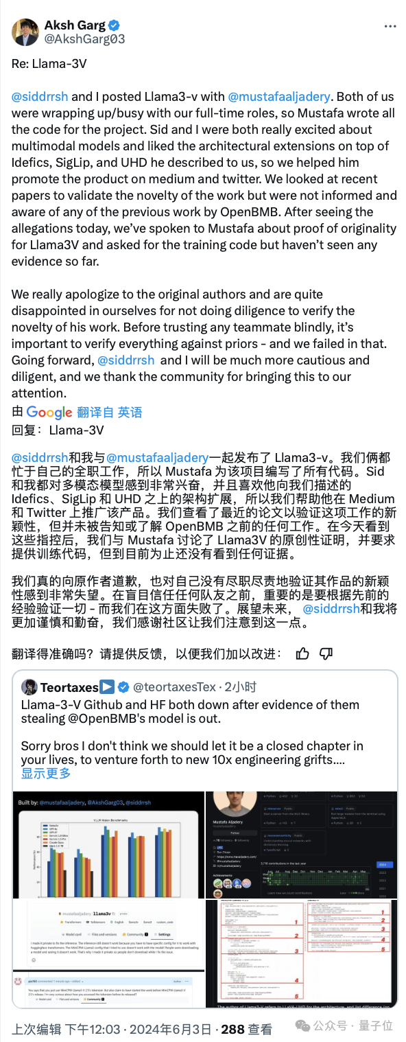 基于以上三点事实,这位网友认为足以证据证明 Llama3-V 项目窃取了 MiniCPM-Llama3-V 2.5 项目的学术成果。
