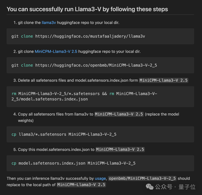 于是网友把从 HuggingFace 下载的 Llama3-V 模型权重中的变量名改成了 MiniCPM-Llama3-V 2.5 的,惊奇发现模型居然可以用 MiniCPM-V 代码成功运行。