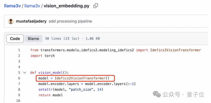 Llama3-V 作者给的回复是这样婶儿的,说是用的面壁智能上一代 MinicPM-V-2 项目的: