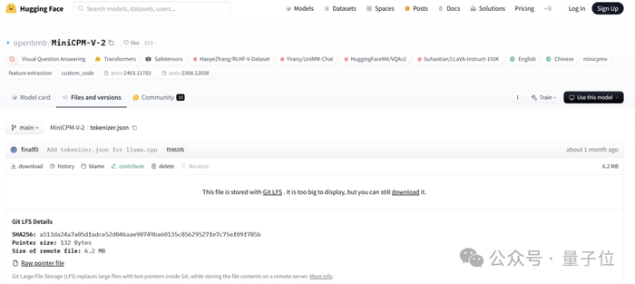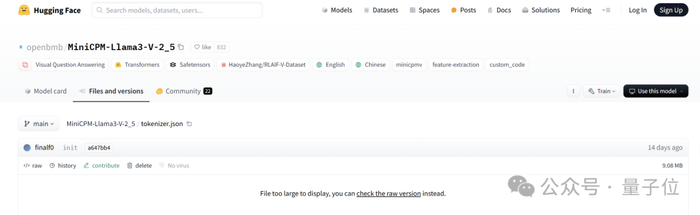 但事实却是,HuggingFace 中,MiniCPM-V2 与 MiniCPM-Llama3-V 2.5 分词器分别是两个文件,文件大小也完全不同。