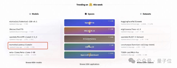 甚至一度冲上了 HuggingFace 趋势榜首页: