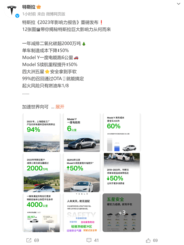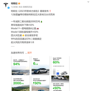 总结起来,《2023年影响力报告》显示了特斯拉公司在治理、环境、产品和安全性等方面的强大实力,并且突出了其在提高行驶里程和加强安全性能等方面取得的重大进展。