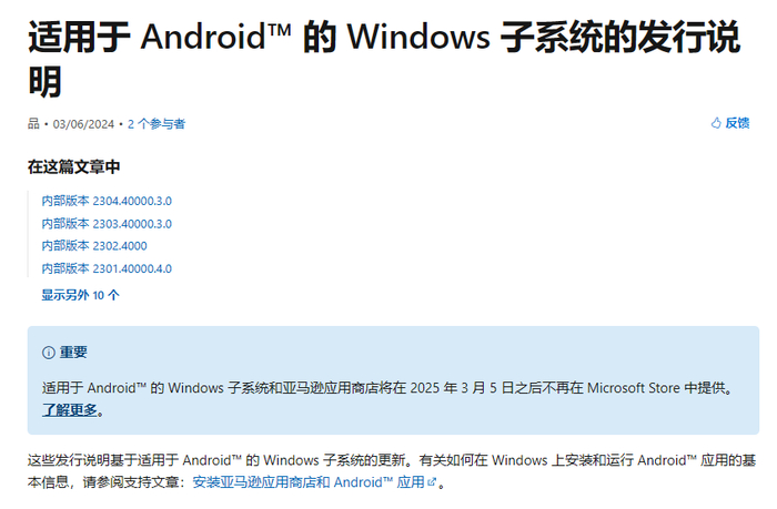 目前,微软已终止对 Windows 安卓子系统(WSA)的支持,亚马逊应用商店已关闭。