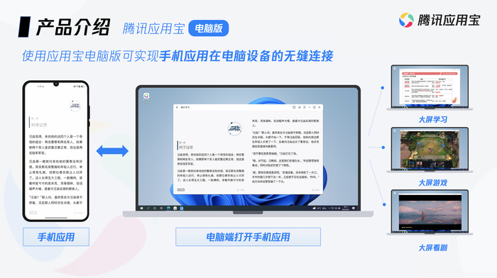 应用宝是腾讯推出的一款应用商店,涵盖民生政务应用、移动应用游戏、小程序、小游戏、云游戏等内容,应用宝 PC 版支持用户在电脑端运行安卓手机应用。