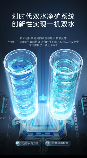 作为净水行业的先行者,美的洞悉行业发展趋势和中国家庭不同人群的需求,深入走访全国25个城市,结合全国各地不同水源水质,并探秘长白山、千岛湖、丹江口等5大水源地,探索还原天然矿物水的奥秘,在坚持净水“0添加、0阻垢剂、0陈水”的核心技术路线上,针对市面净水机只出1种直饮水的现状进行变革,不断攻克技术难题,创新研发净矿双水机,打造更适合中国家庭的净水机。