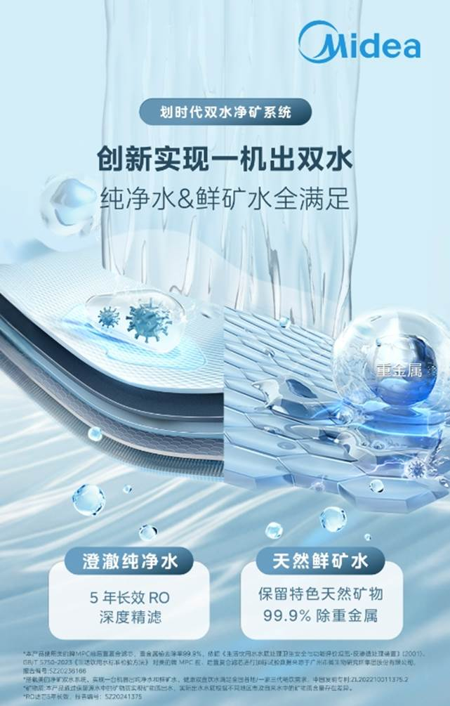 多年来,美的始终坚持以用户需求为核心,在净水技术上不断革新突破。从“0添加、0阻垢剂、0陈水”技术突破,到用户关注的“大水量”等技术,再到如今创新发明的净矿双水机,不仅满足中国家庭饮水多元需求,更引领净水行业迈入下一个创新发展新阶段。