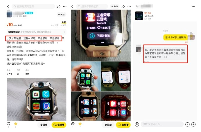 很多孩子依旧会觉得,小天才的功能太少了。因此网络上有大量破解小天才的教程,收费从2-150元不等。破解以后,小天才手表也可以实现刷抖音、逛B站、玩游戏。从账号自述及其他作品来看,卖家很可能就是正在使用小天才手表的小孩哥小孩姐。可能因为正在上课或者还没写完作业,他们大多只能在晚上7点以后回复记者的购买咨询。