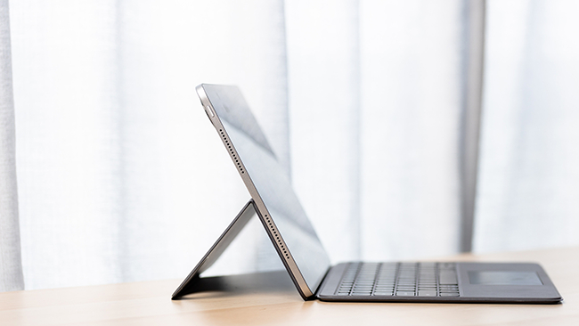 首先我们还是先从iQOO Pad2 Pro的外观谈起,在我手上的是银翼配色,这种颜色是很多笔记本产品的经典配色,整个机身采用了一体化金属材质打造,再搭配金属直角边框,透露出一种工业品的硬朗,但机身表面经过了磨砂工艺处理,所以摸上去的质感非常细腻。iQOO Pad2 Pro整机的厚度为6.6毫米左右,重量不到680克,便携性也是非常不错的。