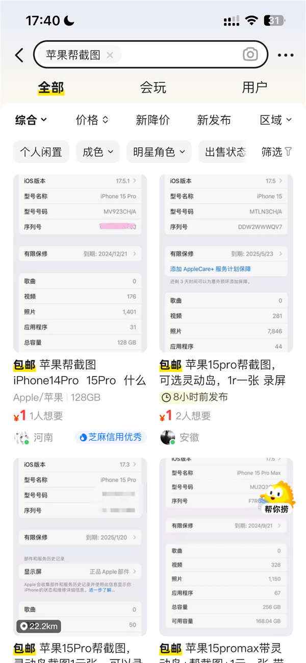 千万别上当!苹果帮截图带灵动岛5块一张其实是骗局:远程锁卖家手机