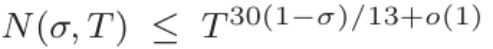 事实证明, σ=3/4 是一个关键值。1940 年,Ingham 得出了𝑁(3/4,𝑇)≪𝑇(3/5+𝑜(1)) 的界限。