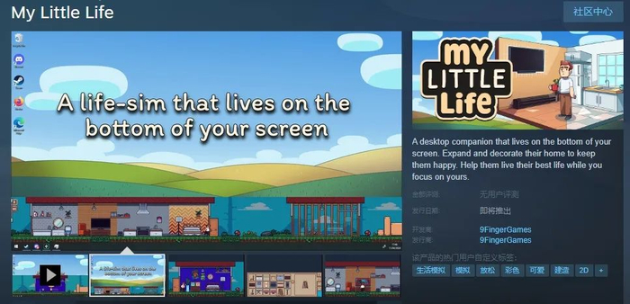 就在《鲁斯狄的退休生活》卖出10万份的几天之后,另一款同样主打“摸鱼”的半屏游戏《My Little Life》也上线了Steam页面,特色则是玩家自己摸鱼,看游戏里的小人打工。