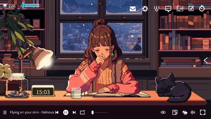 从一开始,他就把这个游戏定义为一个“工作型游戏”,将设计重心放在了对“赛博伴读”氛围感的营造和对生产力工具的整合上,没有追求更复杂的游戏性。