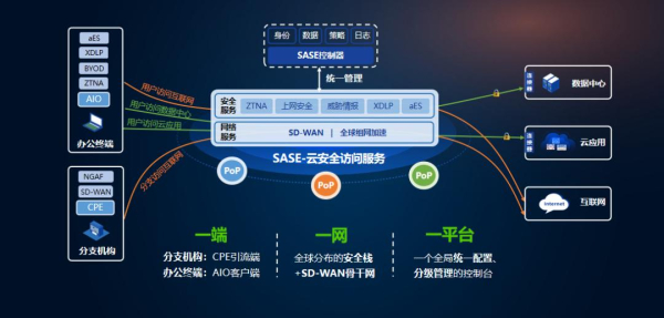 用户只需购买一个All In One客户端,便可就近接入全球分布的SASE PoP点网络,按需订阅云端安全能力。所有安全能力均采用即开即用模式,并支持灵活扩展,以满足不同规模企业下的多样化场景需求。