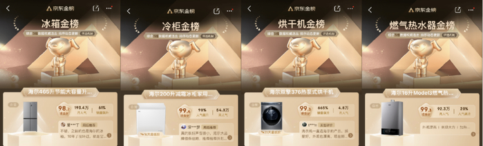 在京东平台公布的金榜中,海尔多个品类爆品综合指数稳居行业首位。该榜单以“商品口碑、人气指数、销售数据、增速、品牌力”五大维度为依据,对上榜商品进行系统化自动化评判,客观直接地体现产品优势。