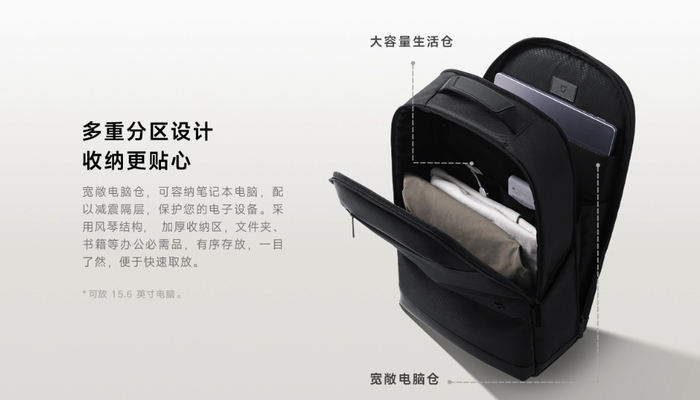 小米米家商务双肩包上架:分层收纳、可放 15.6 英寸笔记本,249 元