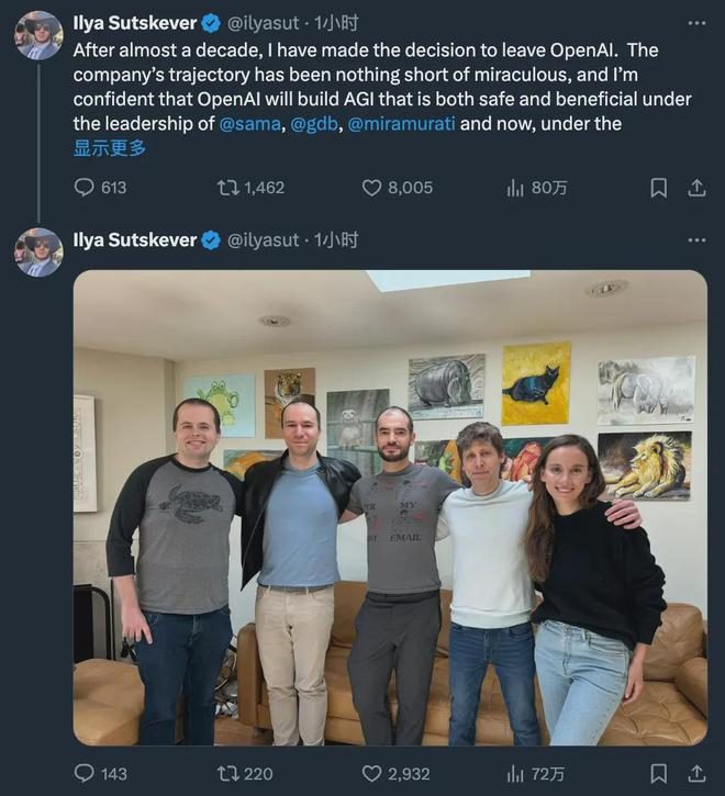 5月15日,OpenAI 联合创始人、首席科学家 Ilya Sutskever ,突然宣布已离开 OpenAI。