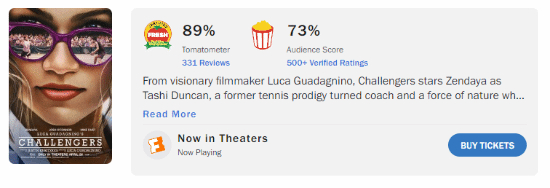由赞达亚、乔希·奥康纳和麦克·费斯主演美国浪漫运动剧情片《挑战者》于4月26日在美国上映,烂番茄新鲜度89%,M站均分82。