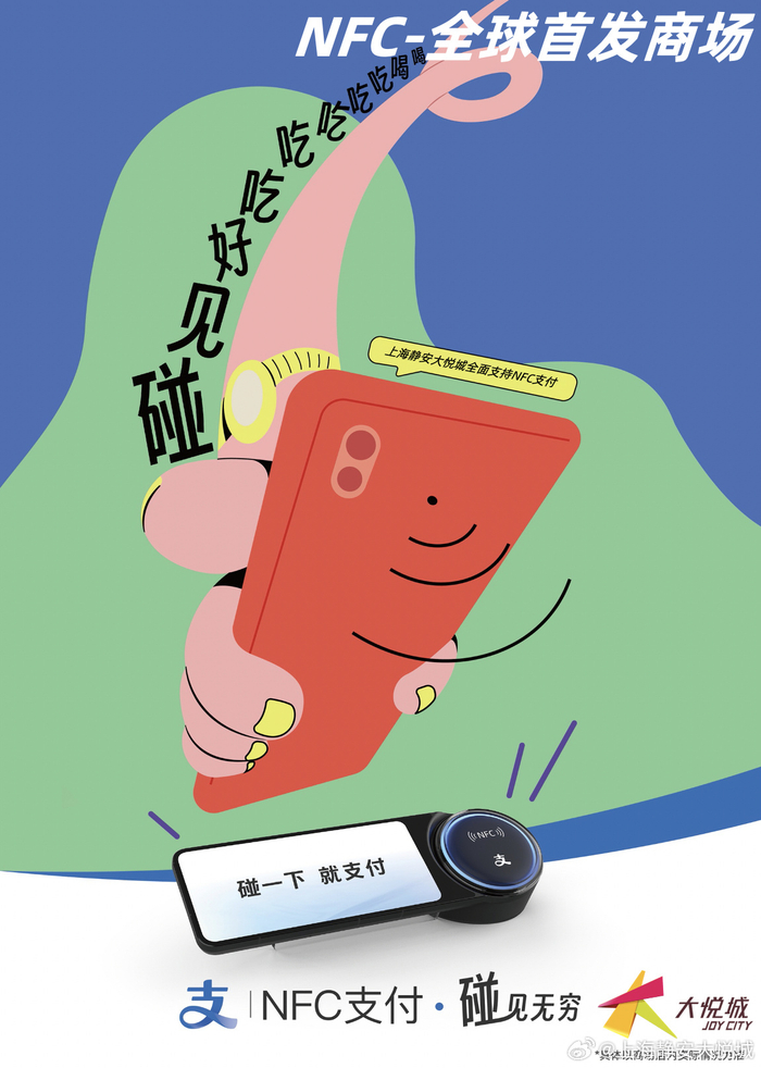 IT之家偶然发现,上海静安大悦城目前已经支持支付宝 NFC 支付,而且号称“全球首发 NFC 碰一下支付”(暂时无法确认是否有其他商家同时支持),并宣布将于 6 月 7 日至 10 日发放最高 20 元无门槛红包。