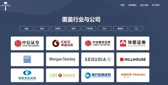 “职得”是上海一家针对留学生就业的求职平台,其官网号称让留学生触手可及名企Offer,涵盖投行、咨询、互联网、快消等多个热门行业领域。在官网“我们的优势”一栏,职得称具有名企实习直推通道,全球千家合作企业。
