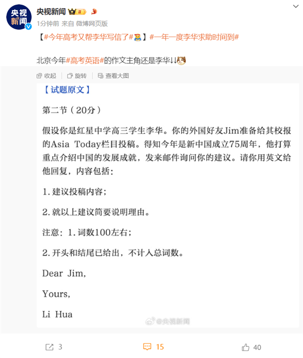 多地高考结束!今年又帮李华了引热议 网友:英语作文钉子户