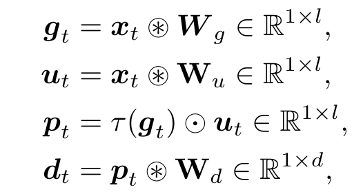 通过采用结合了逐元素操作和累积的三值 RNN,可以构建一个MatMul-free 的 token mixer。在各种 RNN 架构中,GRU 因其简单高效而著称,它在比长短期记忆网络(LSTM)使用更少的门控单元和结构更简单的情况下,实现了类似的性能。因此,研究人员选择 GRU 作为构建 MatMul-free token mixer 的基础。