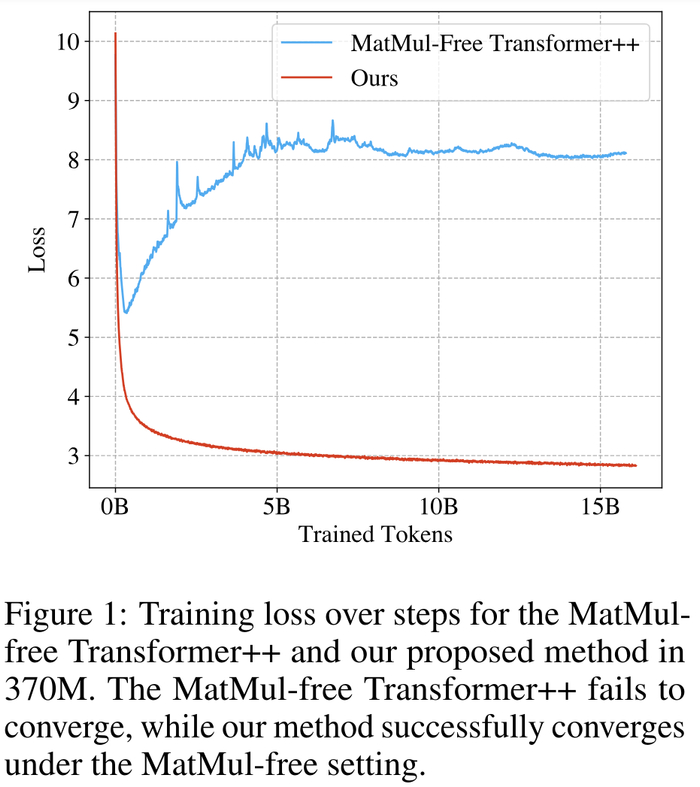 既然 MatMul 占据了 LLM 整体计算成本,且随着 LLM 向更大的嵌入维度和上下文长度扩展时,这种成本只会增加。这引发了一个问题:是否有可能完全从 LLM 中消除 MatMul 操作?