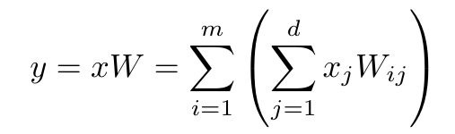 在标准密集层中,输入和权重矩阵之间的 MatMul 可以表示为: