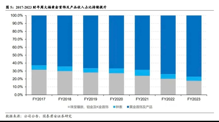 珠宝镶嵌、铂金及K金首饰这类非黄金业务,最近两年确实正在下滑,其业务占比在2022年上半财年还有22.6%。