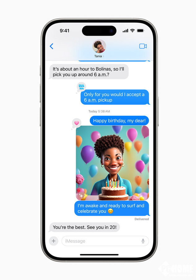 表情符号全新进化,用户现可创建原创Genmoji来表达自我。 只需输入描述文本,便可生成相应的Genmoji,连同若干附加选项。甚至还可直接使用亲朋好友的照片生成Genmoji。同表情符号一样,Genmoji可直接用在任意消息文本内,也可作为贴纸或回复使用点回功能发送。