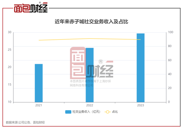 财报显示,2023年全年,公司社交业务整体收入为29.7亿,同比增长16.2%。社交业务收入占比为89.8%,较上年微降1.5个百分点。