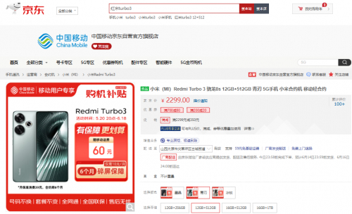 想要换新一款各方面体验均衡的手机可以选择Redmi Turbo3,搭载第三代骁龙8s,性能无忧,配置狂暴引擎3.0,游戏体验更好;搭载小米自研冰封散热™系统,保障高性能持续稳定输出;带来AI魔法消除Pro、AI隔空手势、AI智能电话助手、AI智能噪声抑制、全场景AI网络增强,在图片处理、通话、网络等方面提供更好更智能的使用体验;搭载第二代1.5K中国屏,采用小米青山全新护眼方案;配置小米影像大脑,支持闪电快拍,拍照更轻松。Redmi Turbo 3 12GB+512GB 青刃立减补贴430元,领大促补贴券还可再减20元,到手价1849元,中国移动用户仅需保持现有手机号连续使用6个月并承诺每月保底消费39元即可,中国移动还加赠60元移动话费,可享6个月碎屏保障。