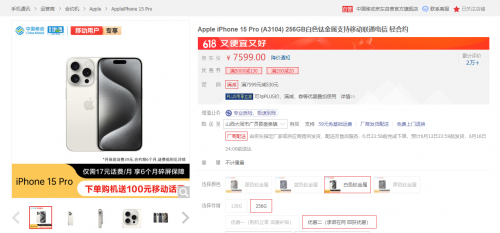 京东618联合运营商带来低价合约机 iPhone 15 Pro到手价6920元