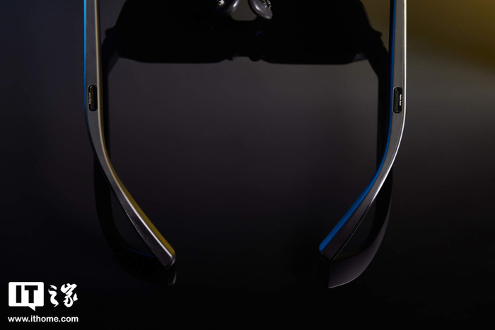 雷鸟 Air 2s 镜腿集成了扬声器和亮度、声音大小、设置等按键,右侧镜腿顶部,是 TYPE-C 接口。