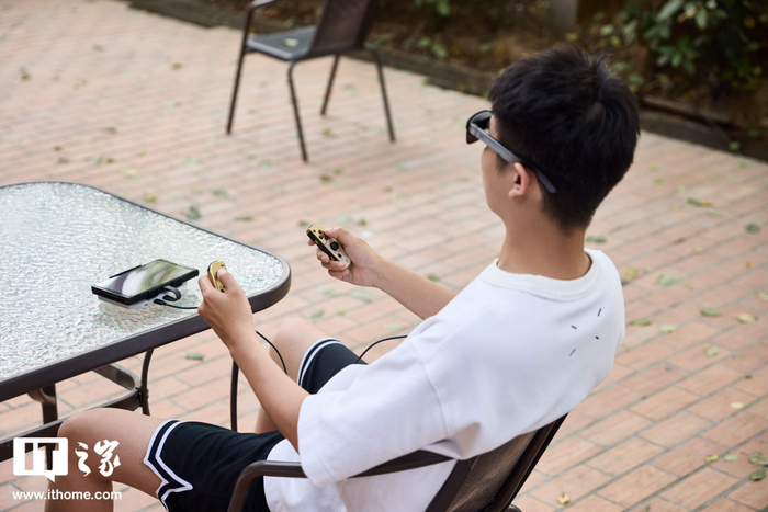 周边配件方面,雷鸟 Air 2s 魔盒像是一个缩小版的遥控器,机身上集成了两枚 C 口,分别用于充电和与眼镜连接。