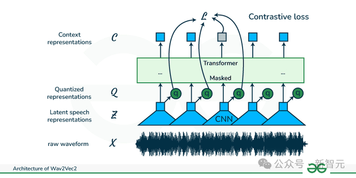 Wav2Vec2使用Librispeech语料库进行预训练(960小时未标记的人类语音数据),来学习如何将音频信号表示为一系列离散标记。