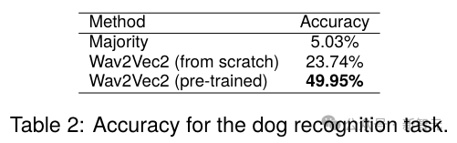 为了在数据集中创建狗狗叫声的声学表示,研究人员以自监督语音表示模型Wav2Vec2为基础,来进行微调。