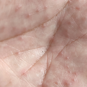 · 部位几乎仅限于手和/或脚,左右比较对称,具体来说,主要部位是手掌、手指侧面、手指背面、脚底前方。