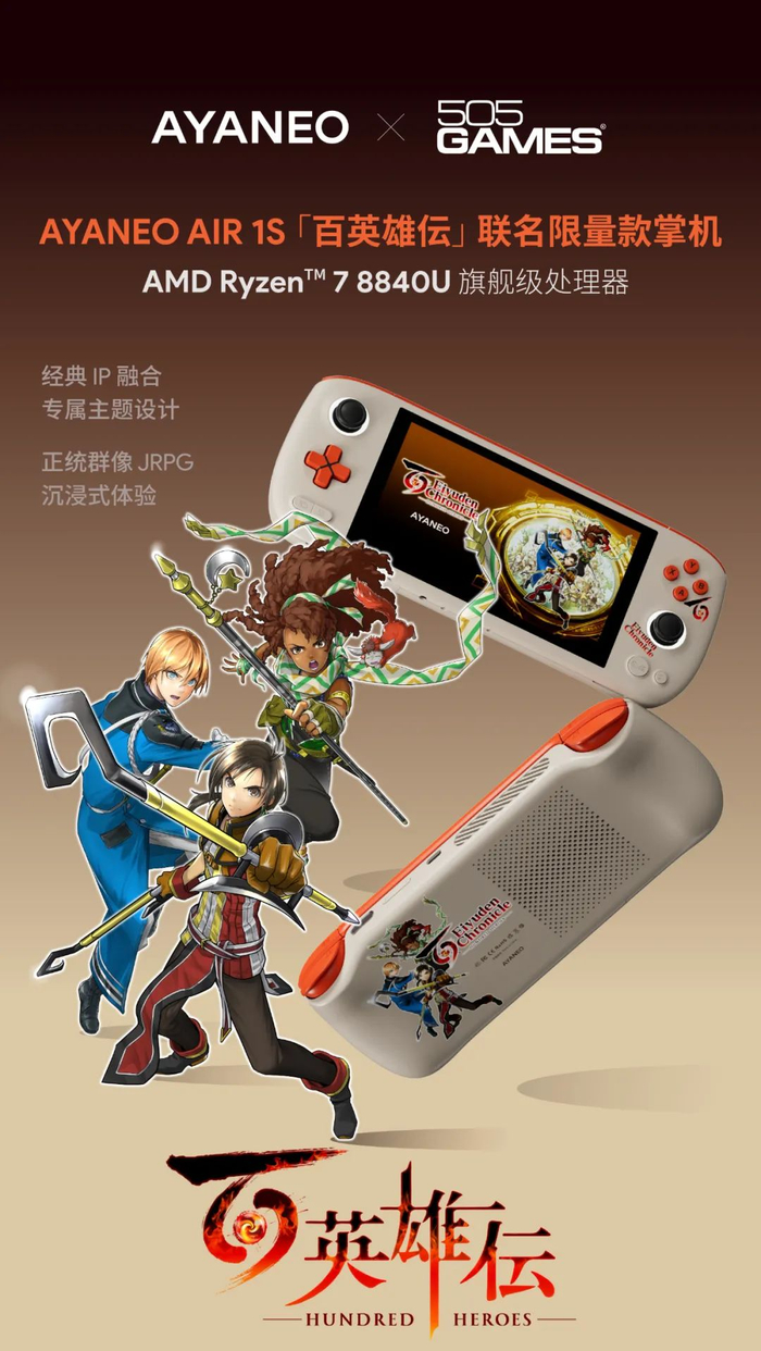 AYANEO AIR 1S 百英雄传联名款掌机开启预定:搭载 AMD Ryzen 7 8840U 处理器,5299 元起