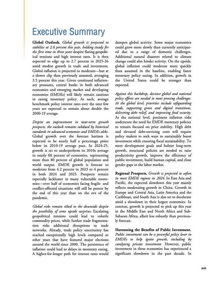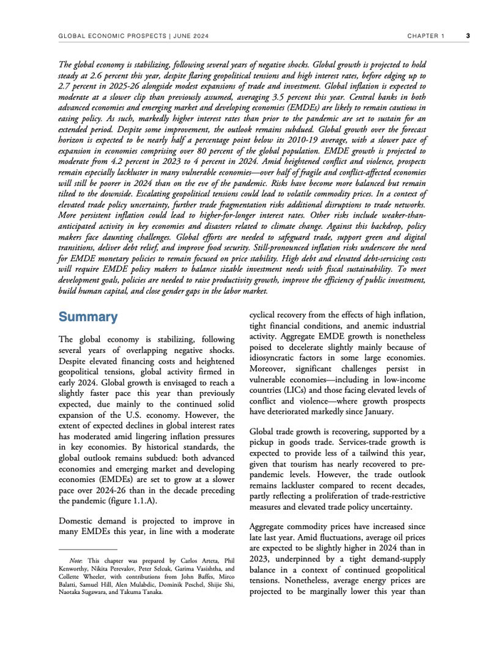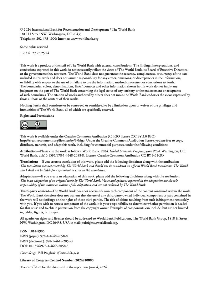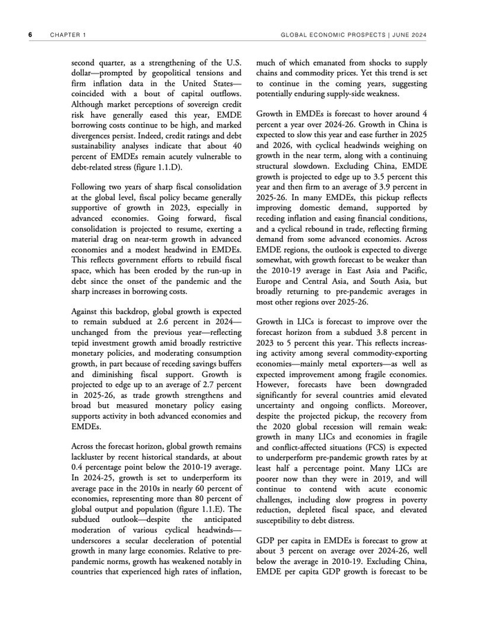 世界银行:2024年6月全球经济展望报告