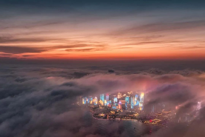 如果你身处沿海、沿江、沿湖城市,或者有意去这些地方游玩,并且城市中存在高楼或者山,那么一定要去体验、拍摄一下这种壮观景象: