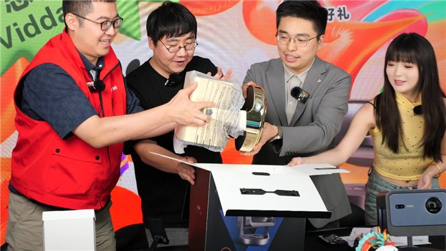618前夕,Vidda为2024欧洲杯限量定制的“冠金投影”现身京东3C数码“总裁价到”直播间。海信视像科技助理副总裁刘为杰、京东集团3C数码事业部数码业务部负责人赵烁、先看评测创始人“MR.厉害”一同在直播中现场开箱了全球限量三台的Vidda“冠金投影”。据介绍,其中两台在电商平台中免费抽送,而直播中开箱这台将成为京东的收藏陈列。