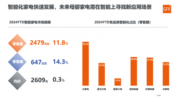 近年来,智能化家电在中国市场迅速发展,GfK预测,2024年中国智能家电市场规模将达到2479万台、647亿元,同比分别增长11.8%、14.3%。“用户+场景”是家电行业内的高频热词,从使用场景中的需求出发,驱动产品创新,是不少家电企业接下来的发展方向。对母婴家电市场来说,未来也需在智能领域寻找新的应用场景,智能与场景结合将促进母婴家电更好地服务消费者。